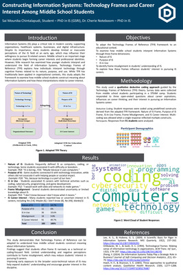 Information Systems (IS) plays a critical role in modern society, supporting organizations, healthcare systems, businesses, and digital infrastructure. Despite its importance, many students develop limited or inaccurate perceptions of the IS field at an early age, which may influence their willingness to pursue IS-related careers. Middle school is an important stage where students begin forming career interests and professional identities. However, little research has examined how younger students interpret and understand the field of Information Systems. Technology Frames of Reference (TFR) explains how individuals interpret technology through cognitive frames related to its nature, purpose, and use. While TFR has traditionally been applied in organizational contexts, this study adapts the framework to examine how middle school students construct meaning about Information Systems and how these interpretations relate to career interest.